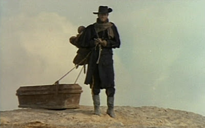 The plot is difficult to comprehend at best but it almost doesn't matter, what matters is the stylised approach to this Italian western cum Mario Bava style horror. It's a sadistic, weird and unsettling mediation on violence, revenge and overall greed (the scene where the townsfolk rip apart a man to get the gold bullets that felled him out of his corpse is especially gruesome and blackly comic) with some interesting and perplexing direction; the flashback scenes near the start are eyecatching with their washed out hallucinogenic dreamy/nightmarish look and are strangely intercut, with shots lasting little more than a frame or two, Franco 'Kim' Arcalli's editing is indeed very unique and striking, only really settling down to tell the tale in the here and now, whilst director Giulio Questi is clearly Catholic when it comes to his metaphors....